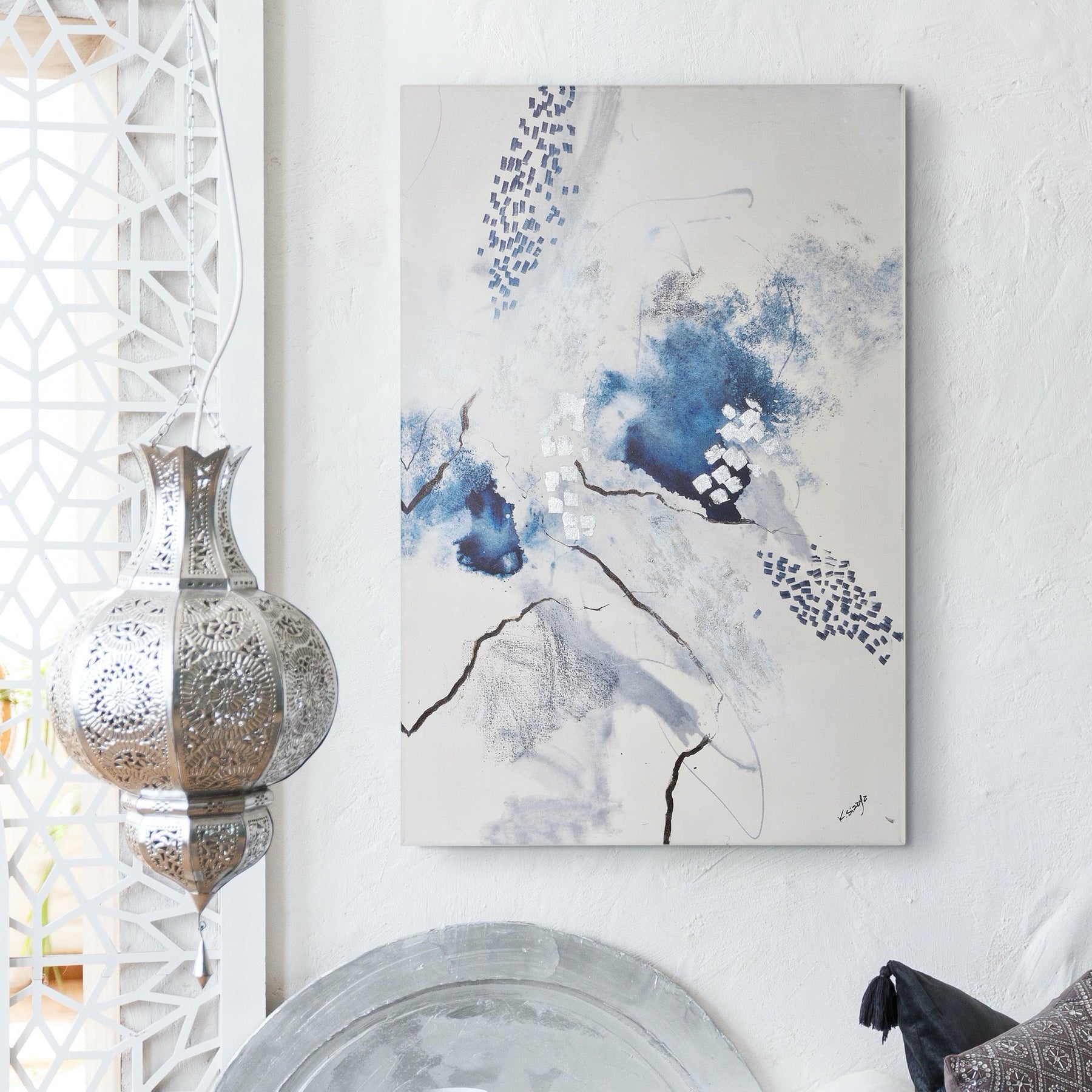 Hand Painted - Canvas - Textured - Silver Leaf Accents