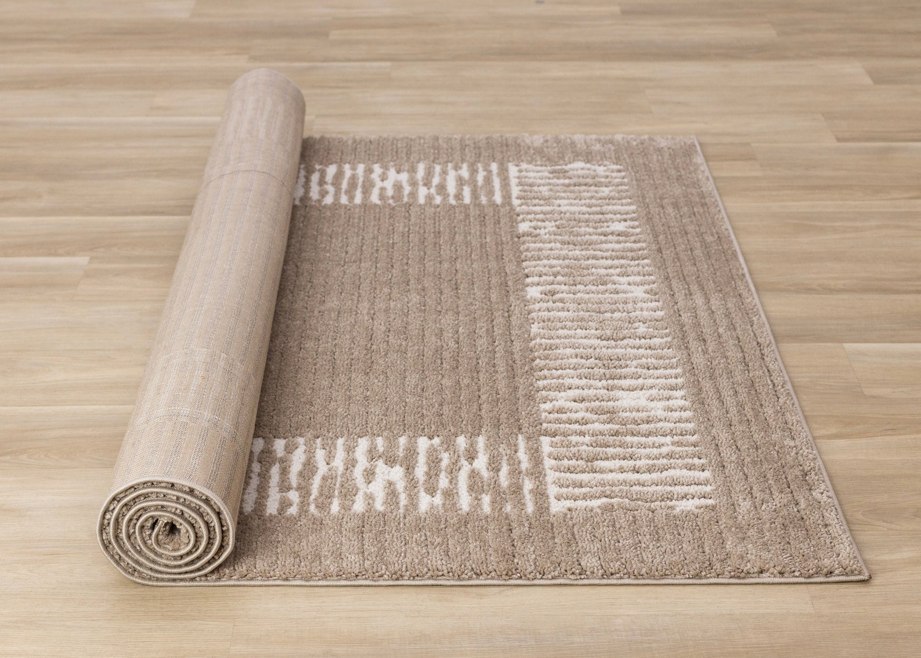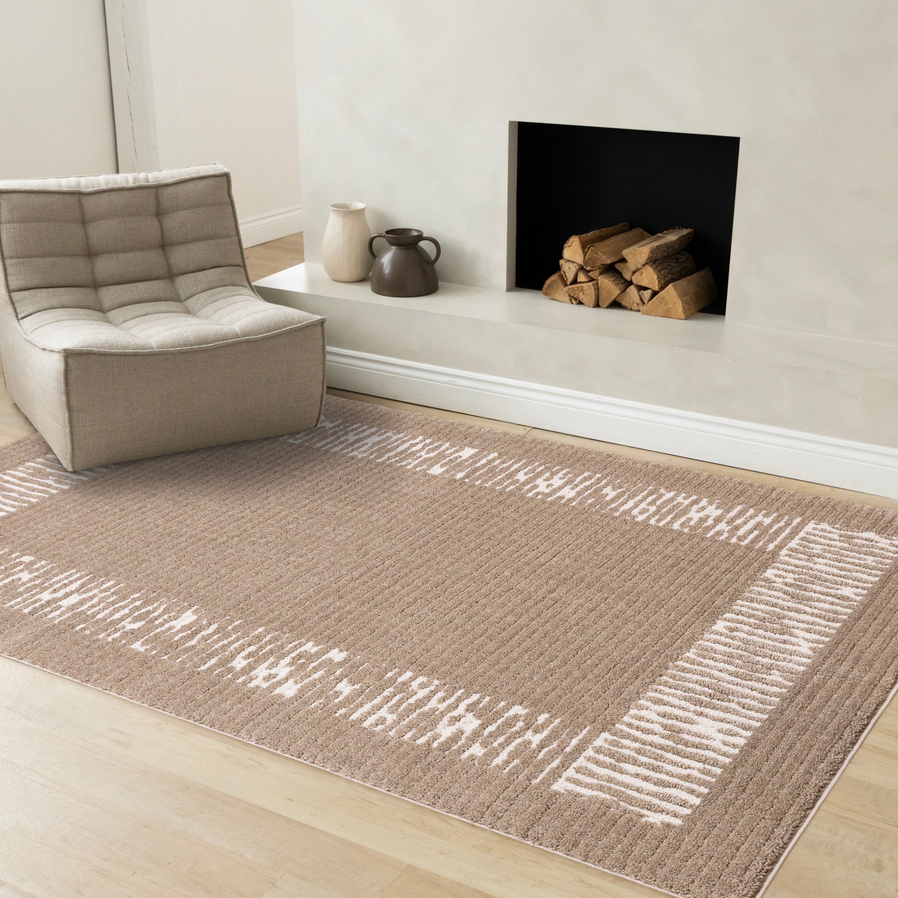 Talia Taupe White Striped Border Rug