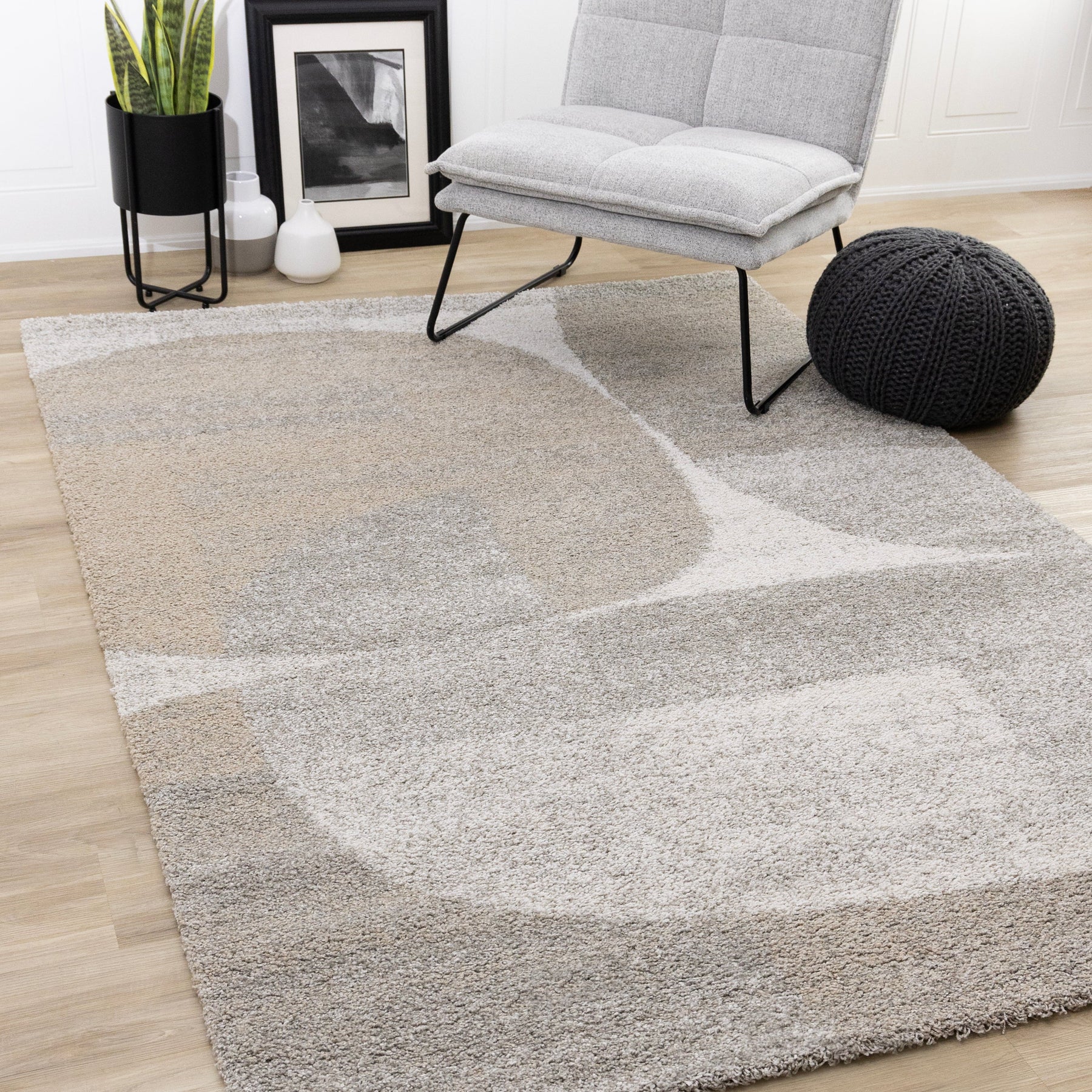 Mora Beige Taupe White Distressed Overlapping Shapes Design