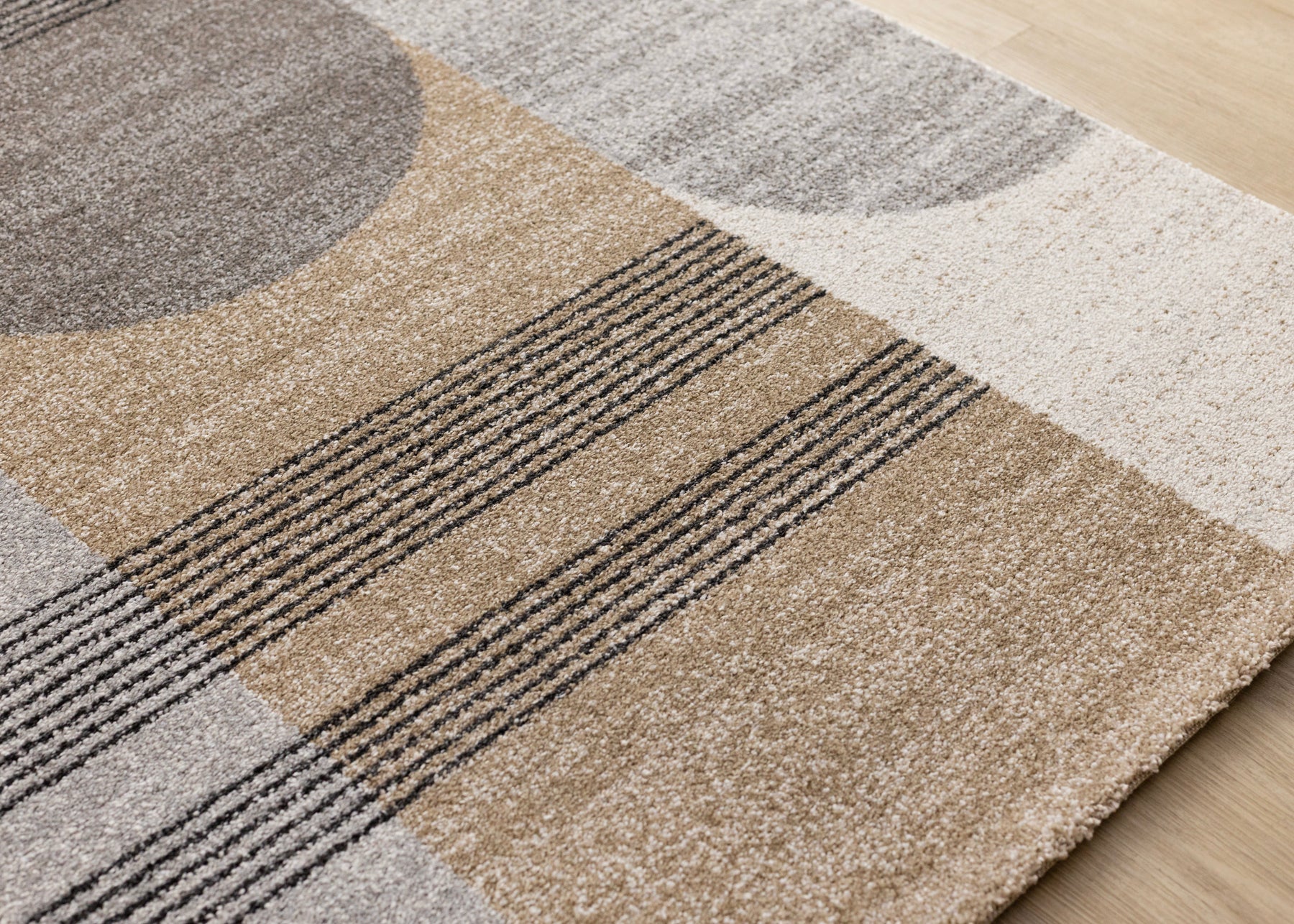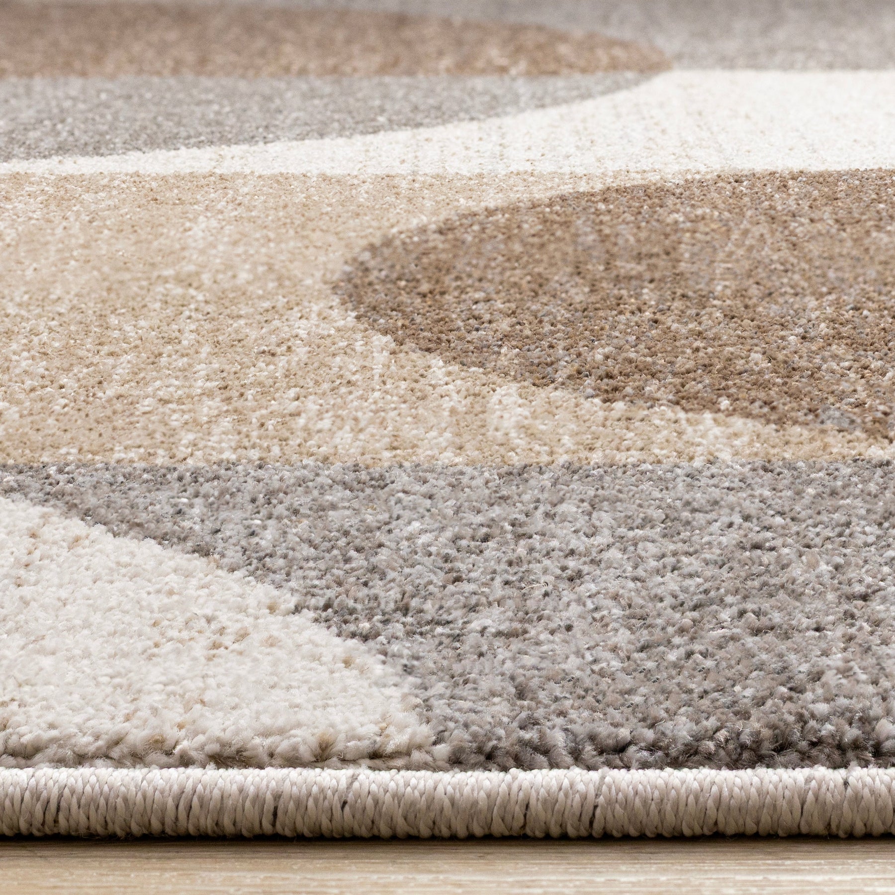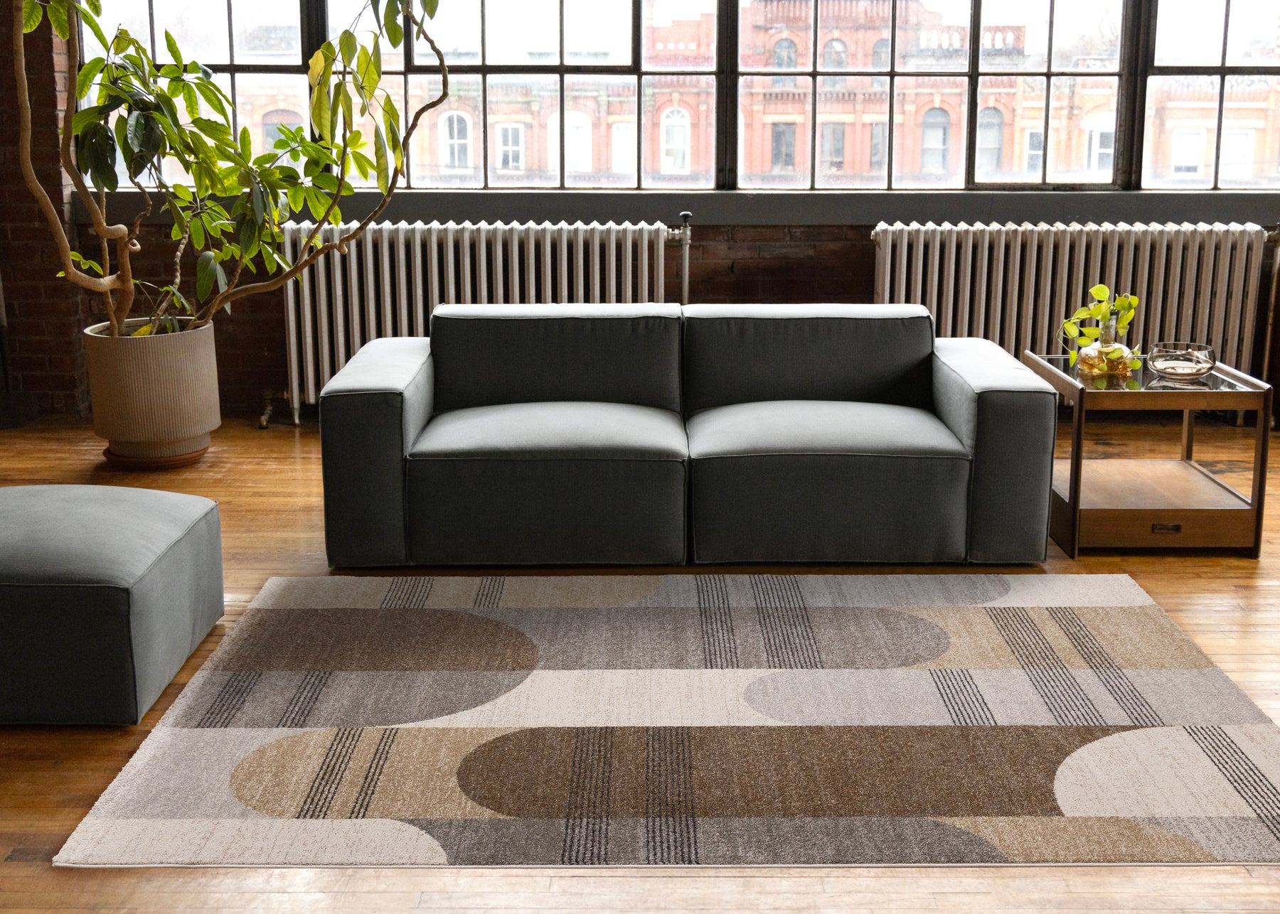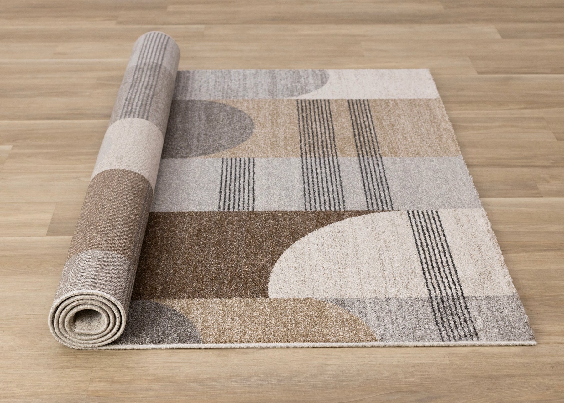 Marquis Brown Grey White Striped Arched Shapes Design Rug