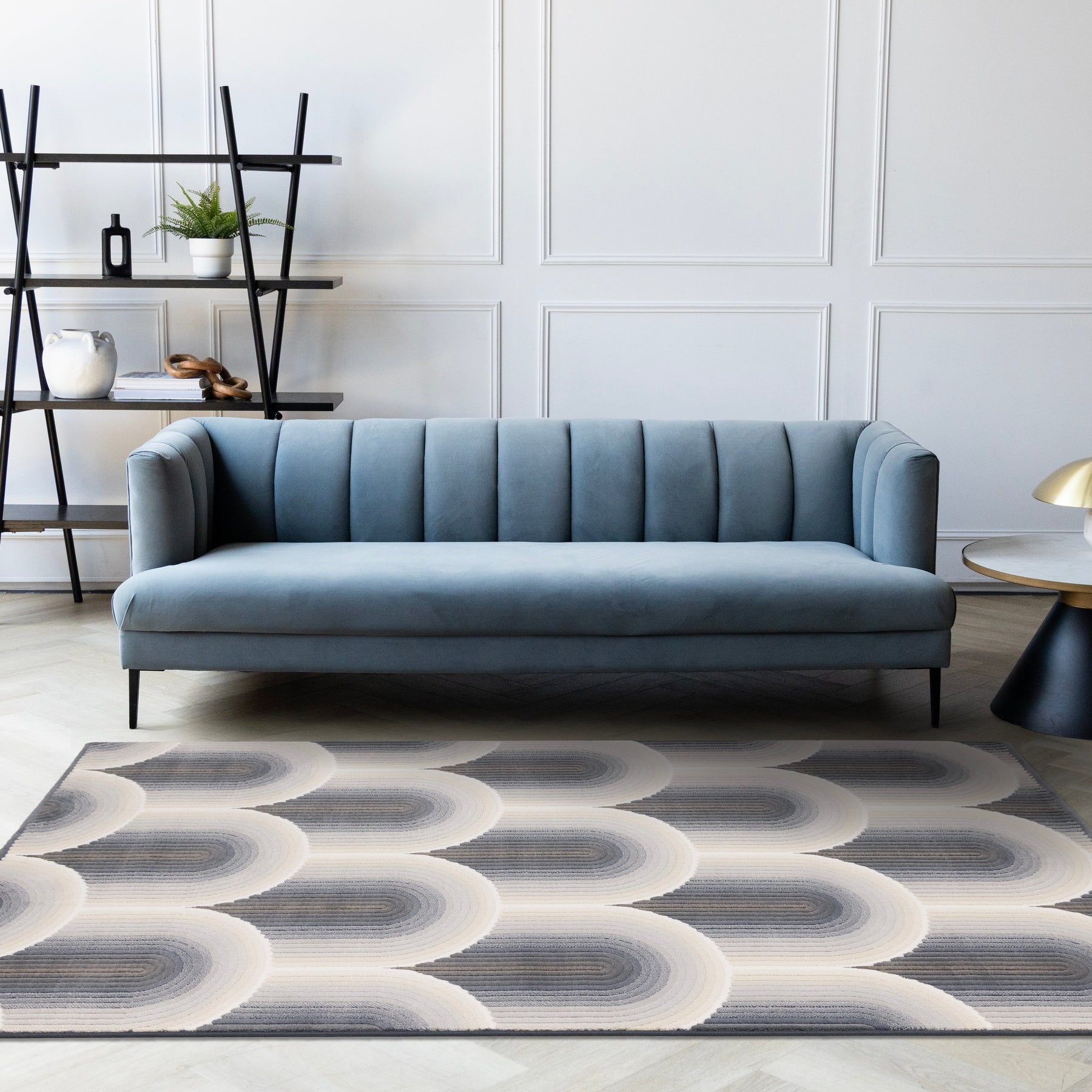 Dense pile paired with striking drop stitch design give the Ella collection a captivating appeal. Soft colours infuse these bold patterns for a modern look and make a stunning showpiece for any home. Made with high quality Belgian construction for beauty and longevity.