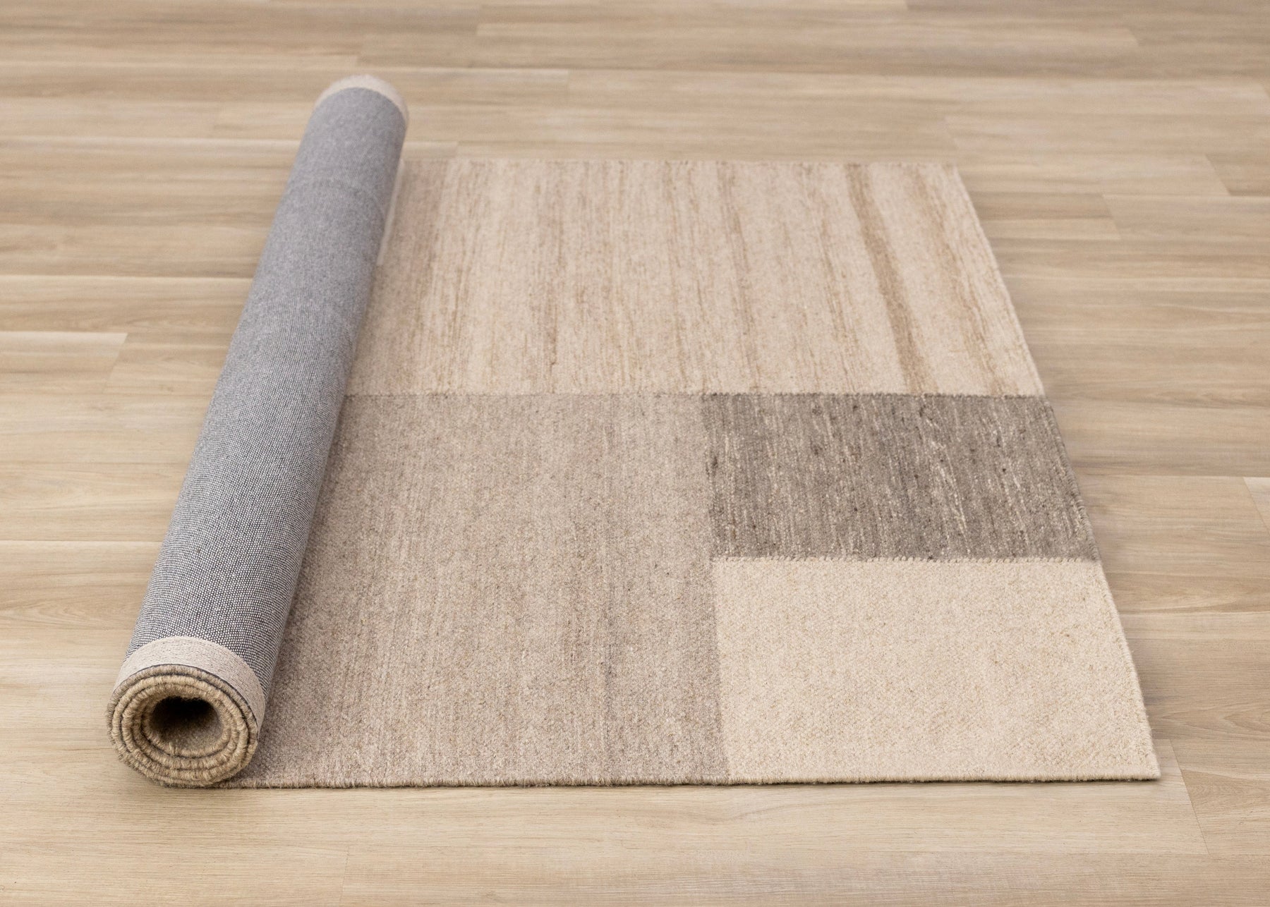 Ascent Taupe Beige White Stacked Squares Design Rug