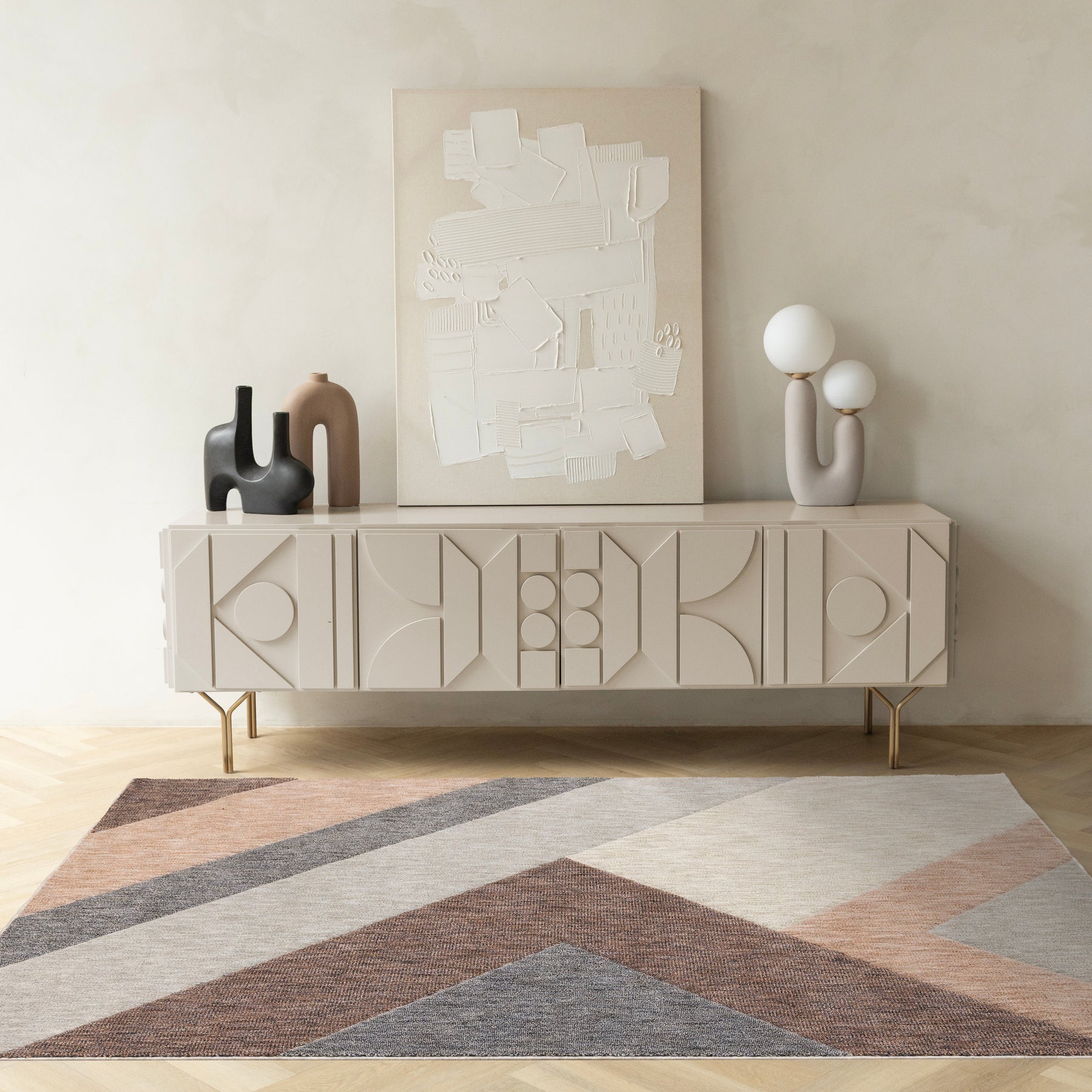 Cora Pink Taupe Geometric Design Rug