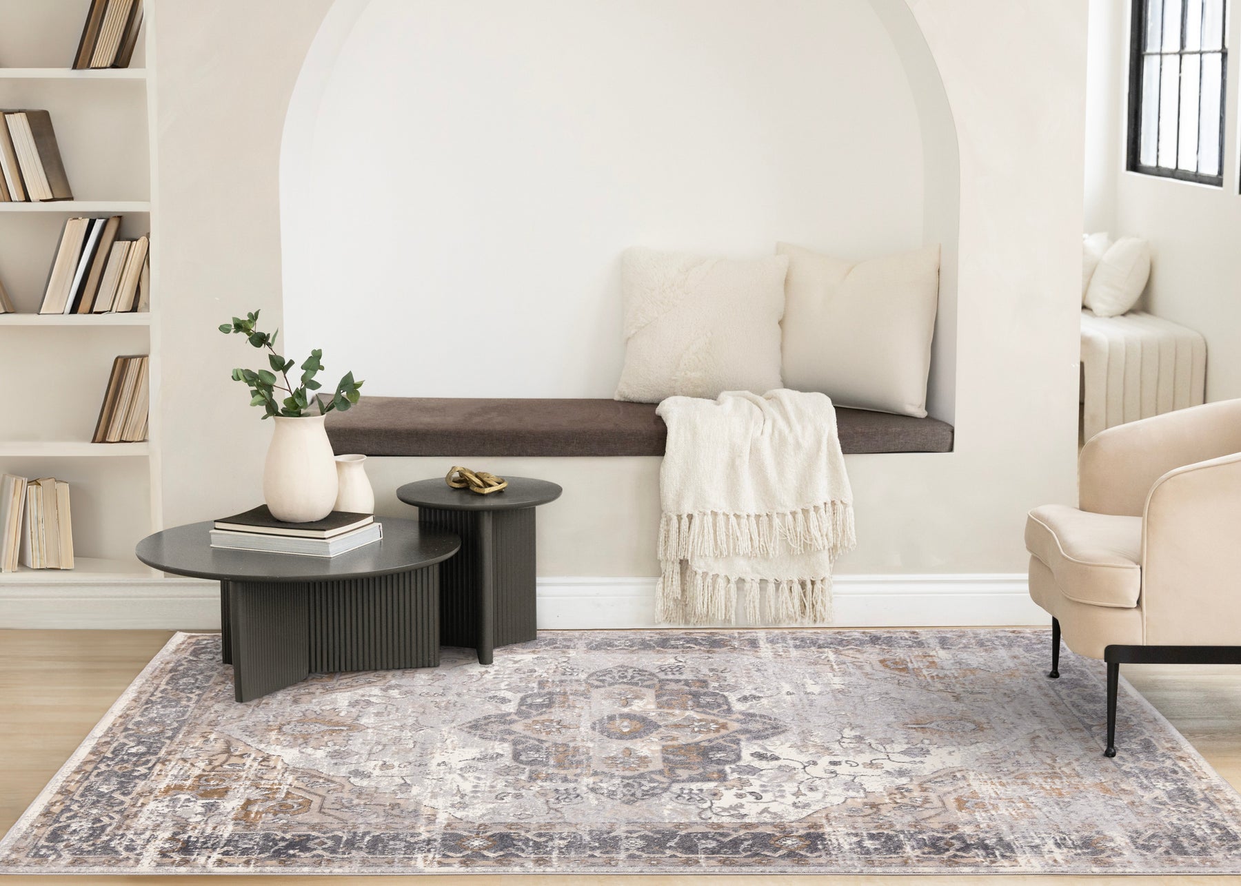 The Emory collection offers smooth, silky, soft touch plush rugs. The short pile is sleek and stain-resistant, making it easy to maintain. The beautiful contemporary designs come in a pleasing palette of cool greys, beige, taupe and white.