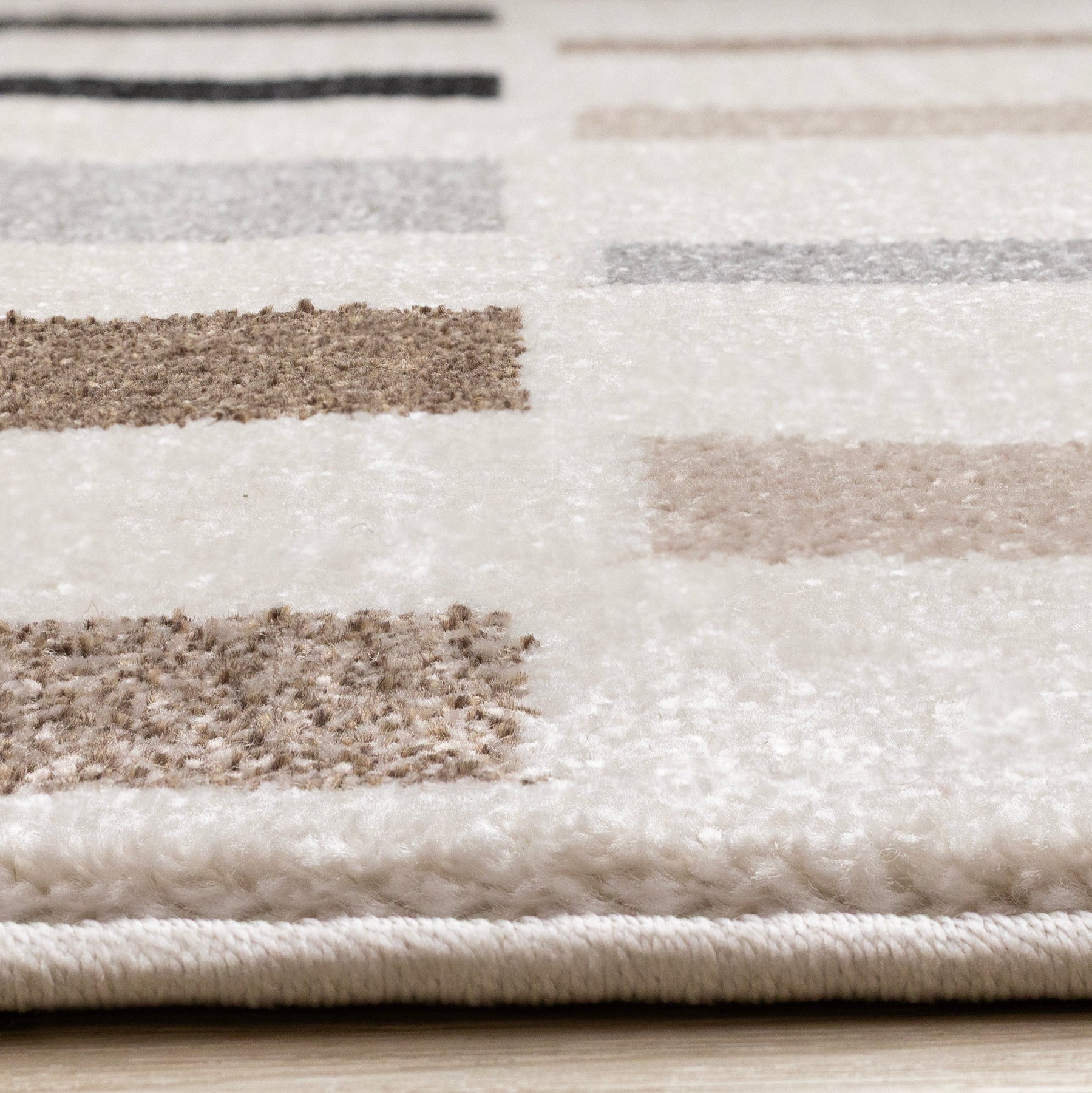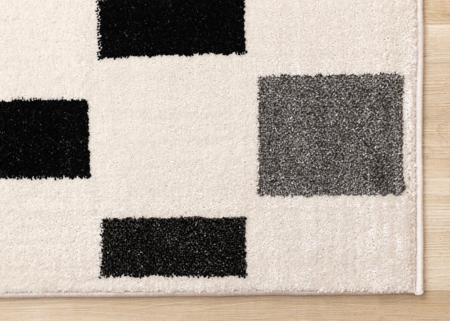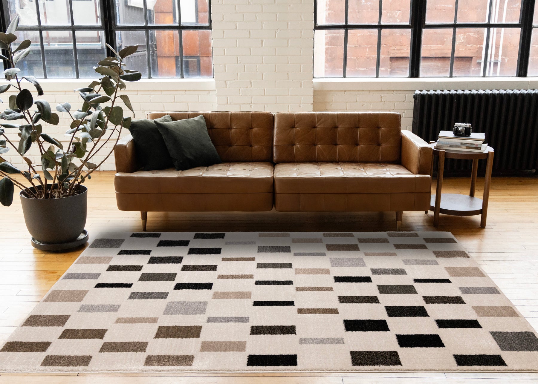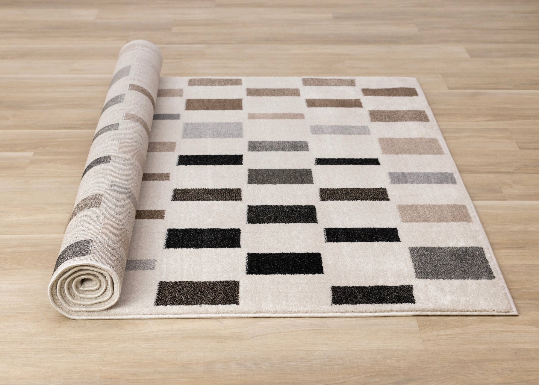 Shade Black Grey White Taupe Rectangle Rows Design Rug