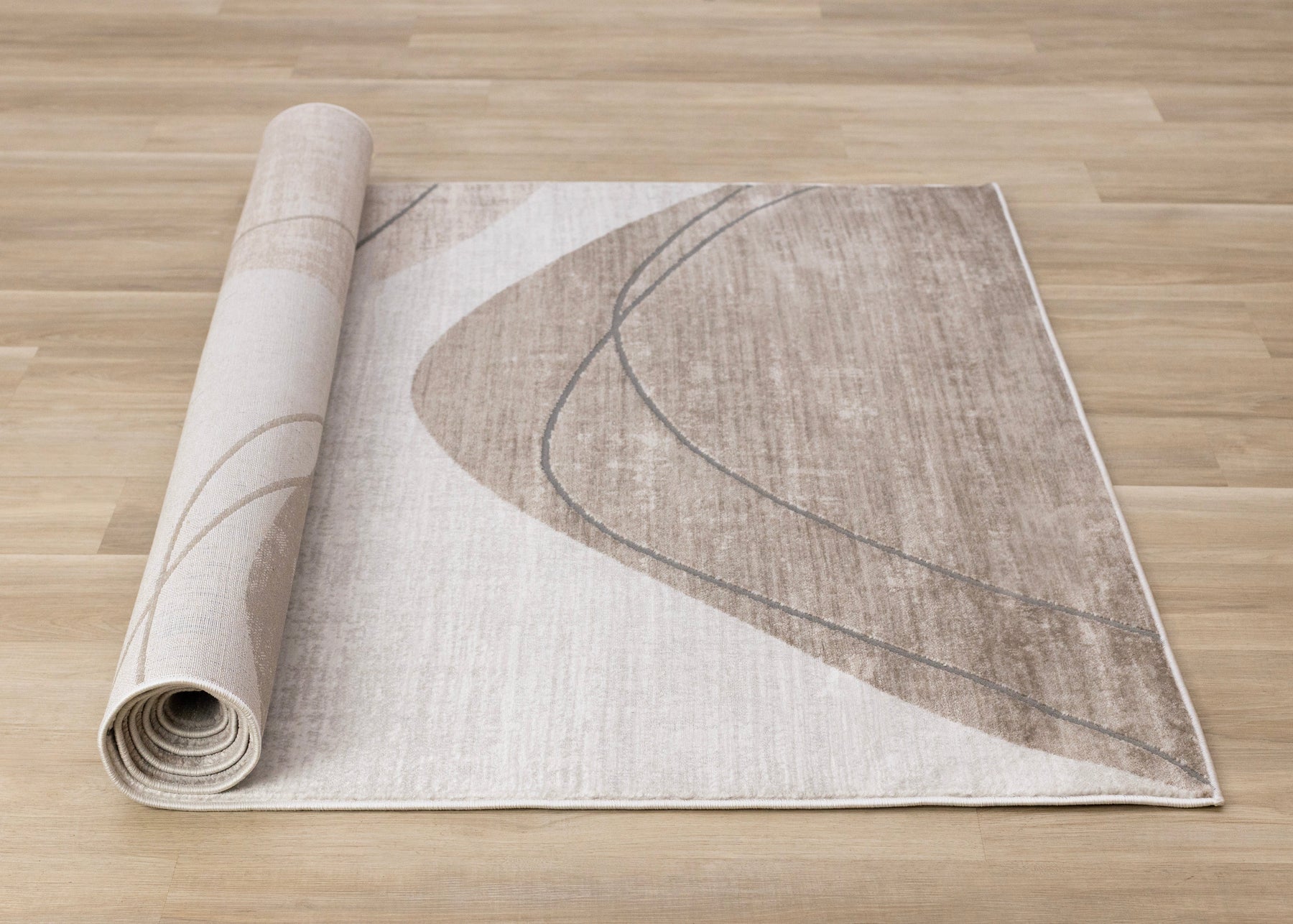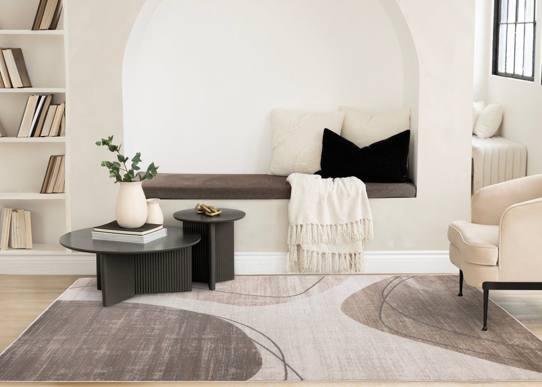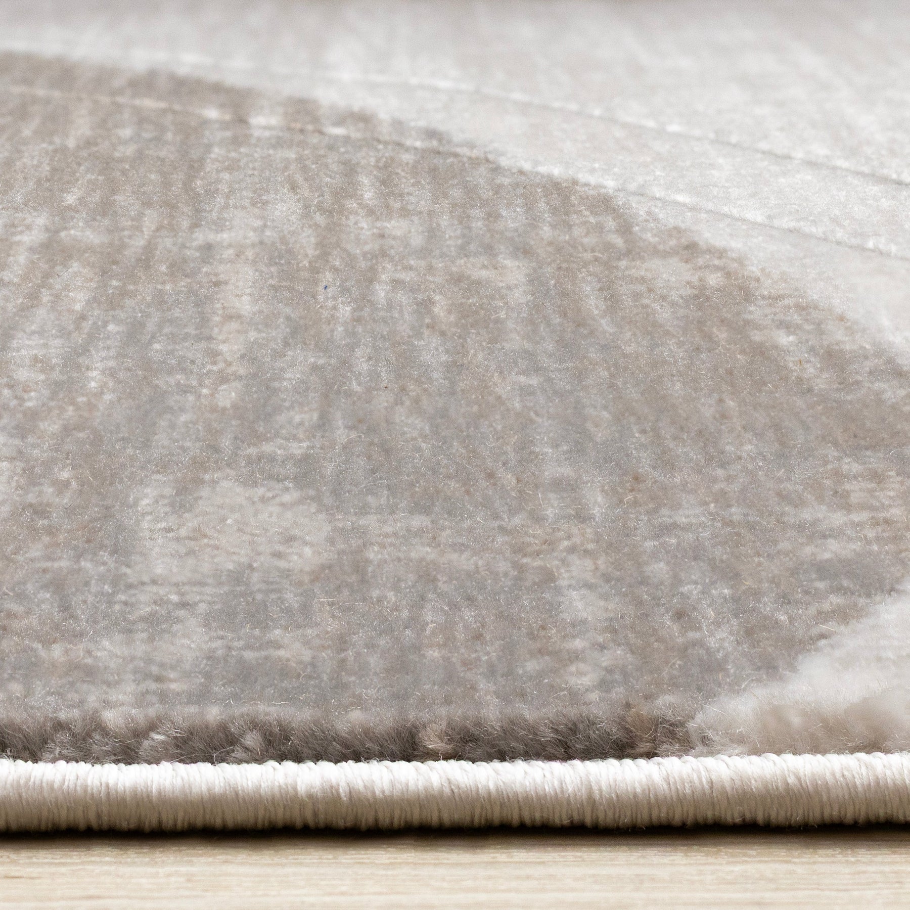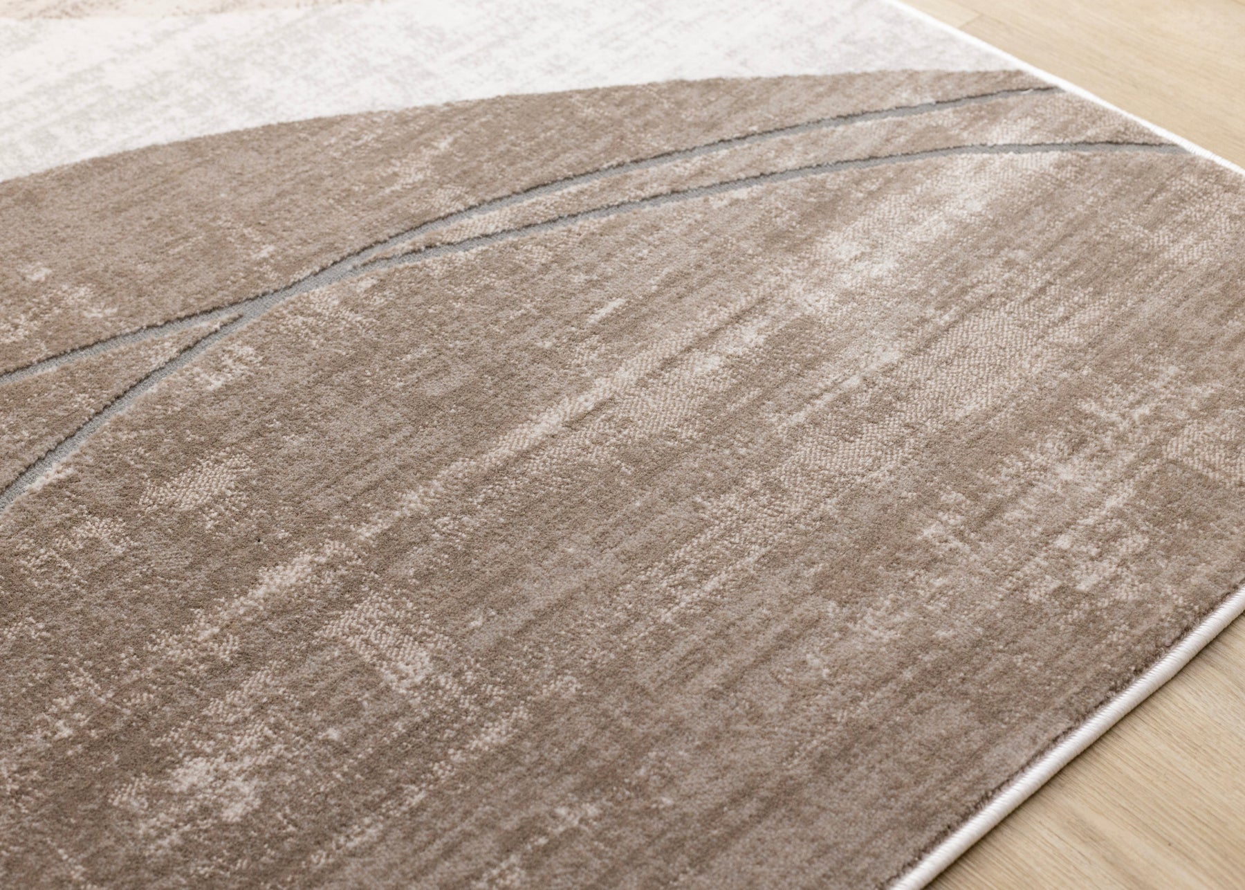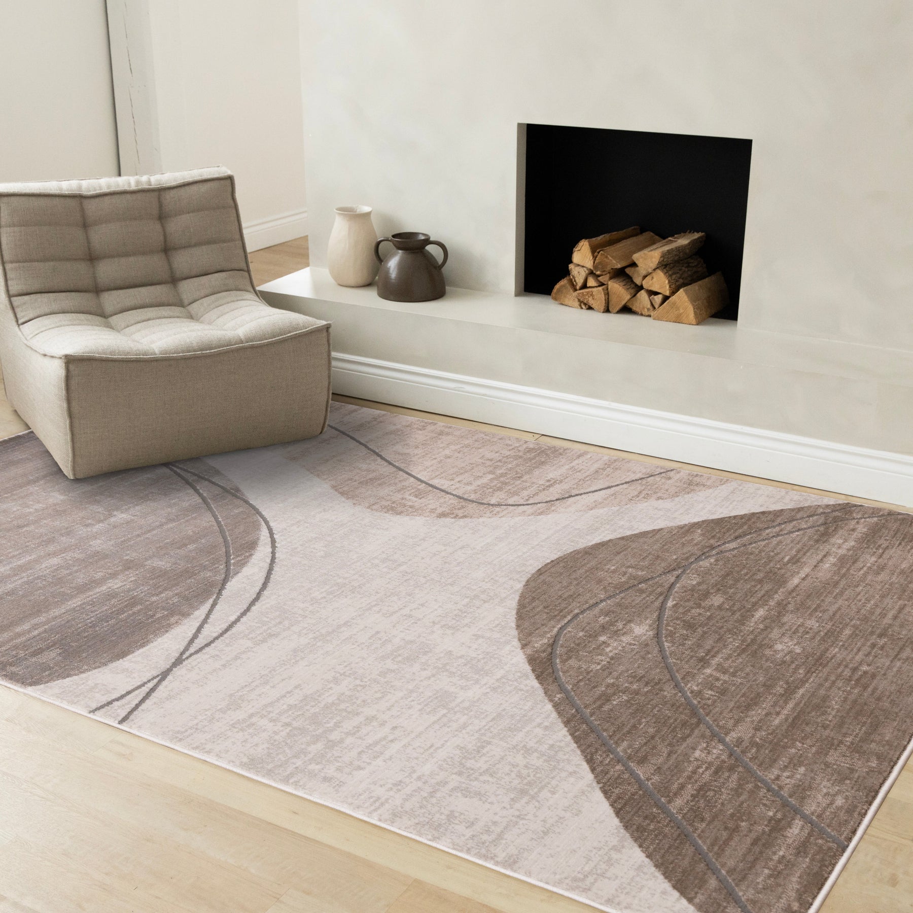 Legacy Taupe Beige White Grey Rounded Shapes Design Rug