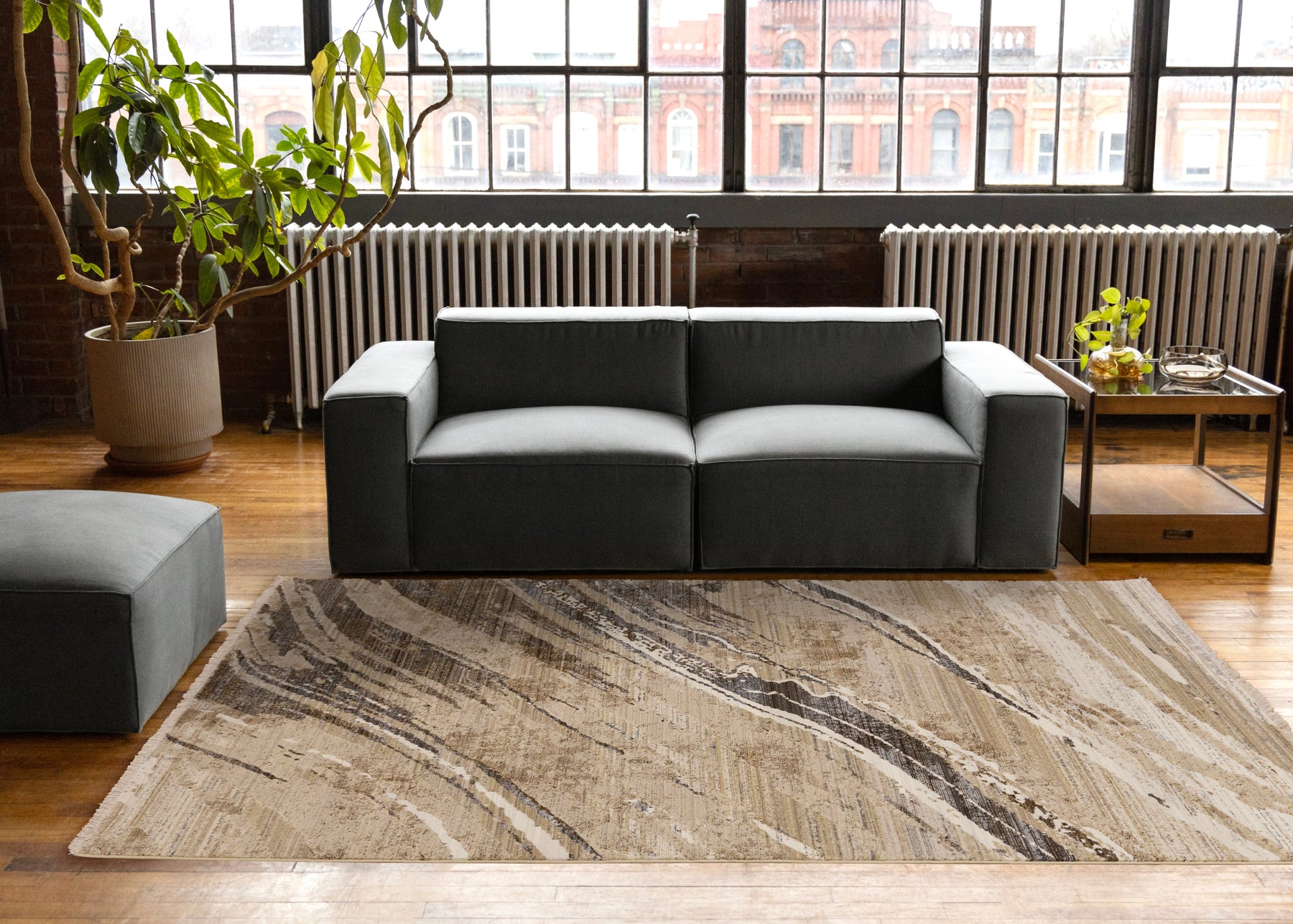 Samira Beige Brown Grey Distressed Organic Lines