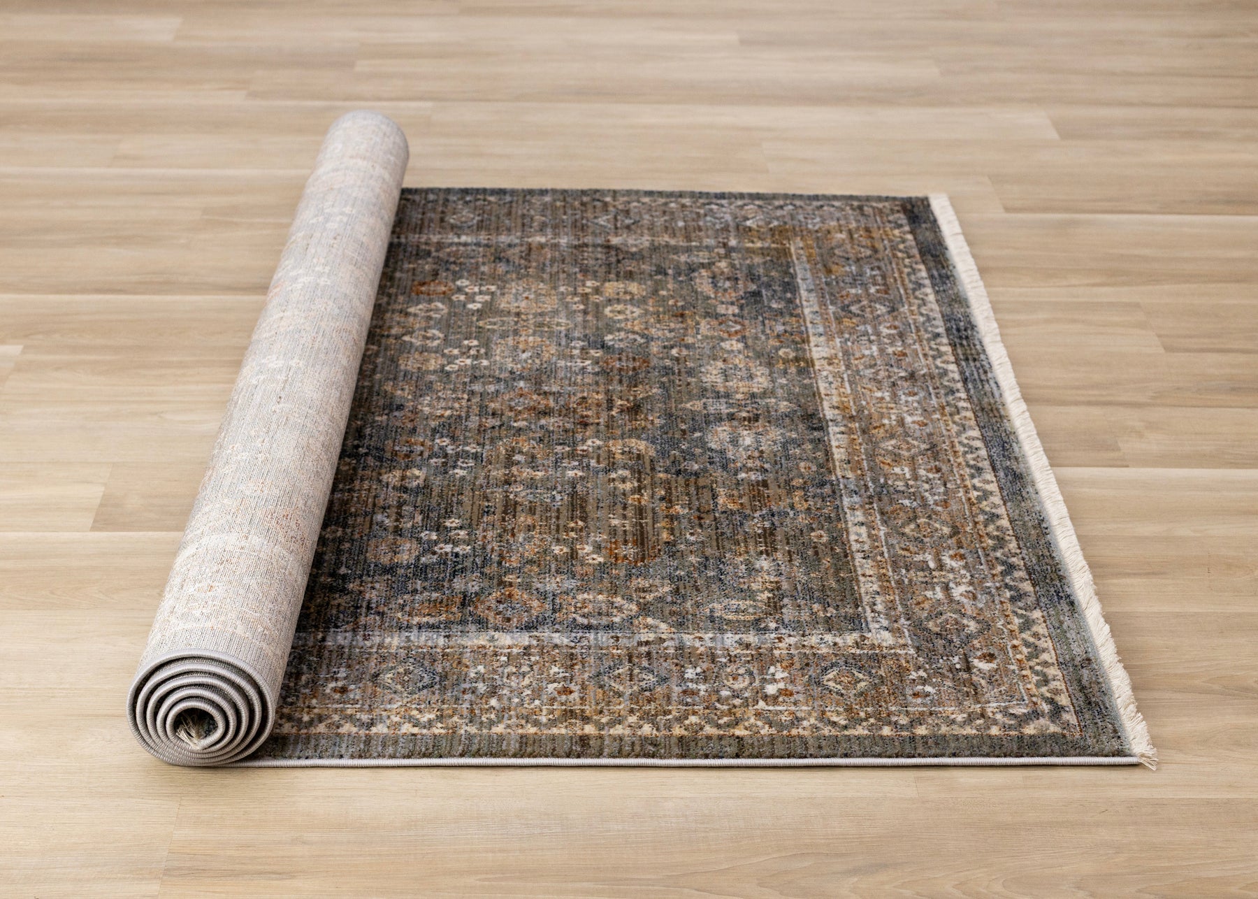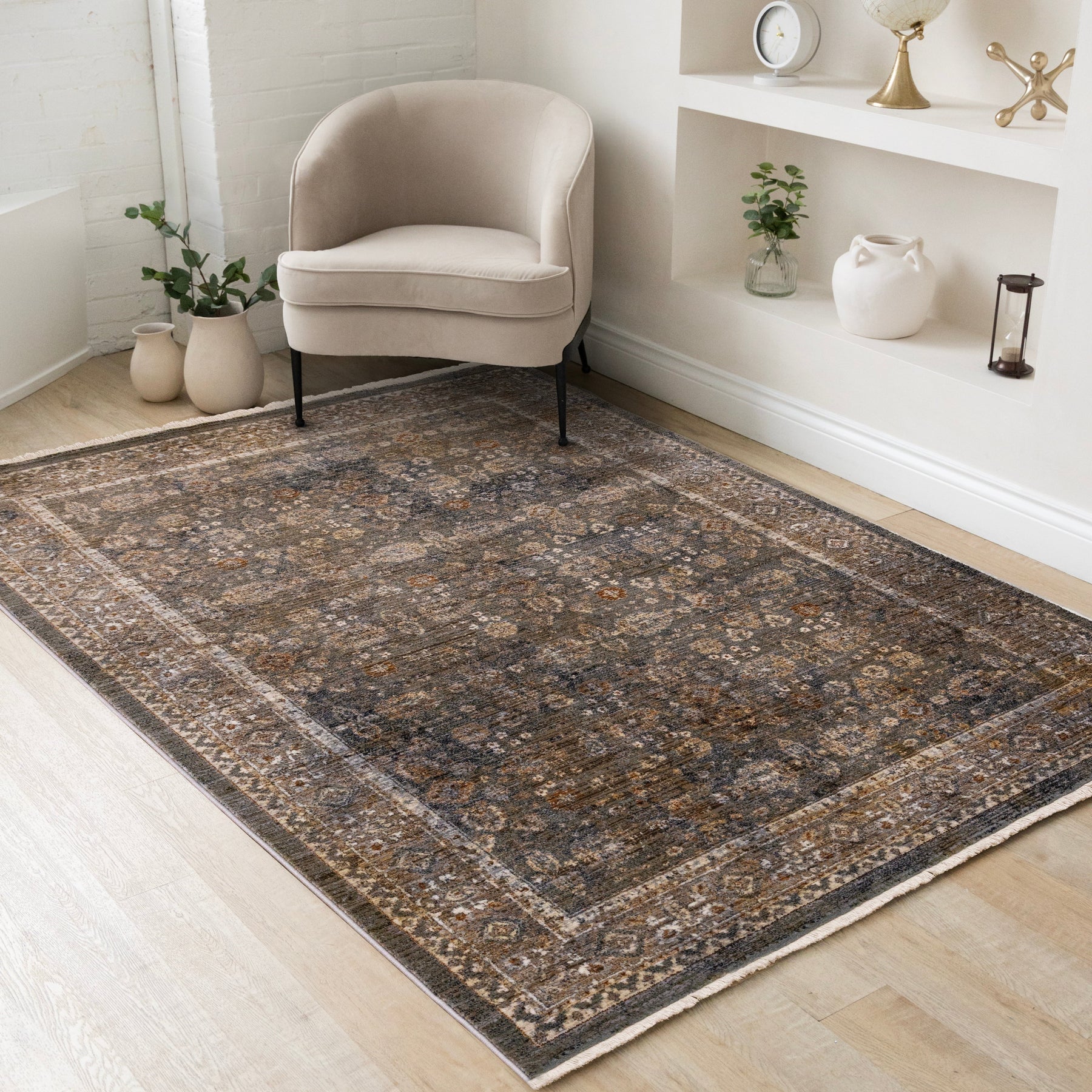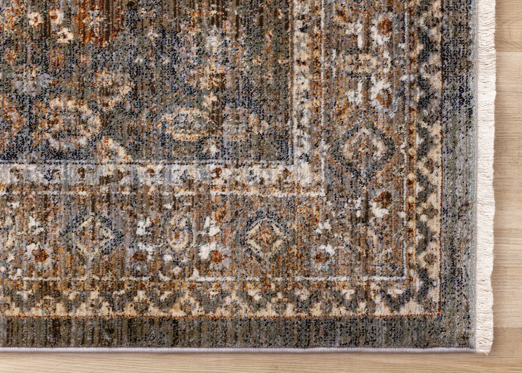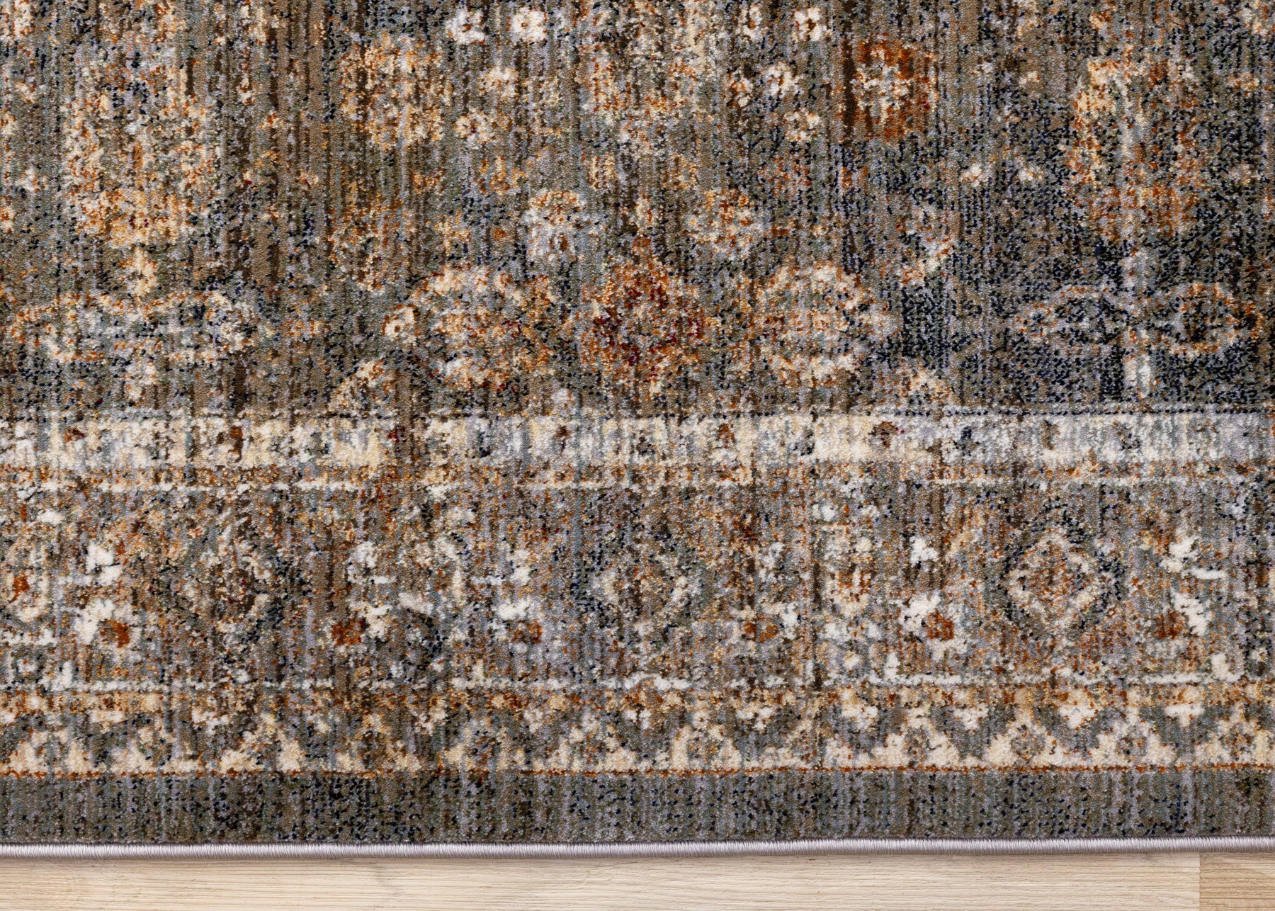 Serene Blue Orange Green Grey Classic Traditional Rug
