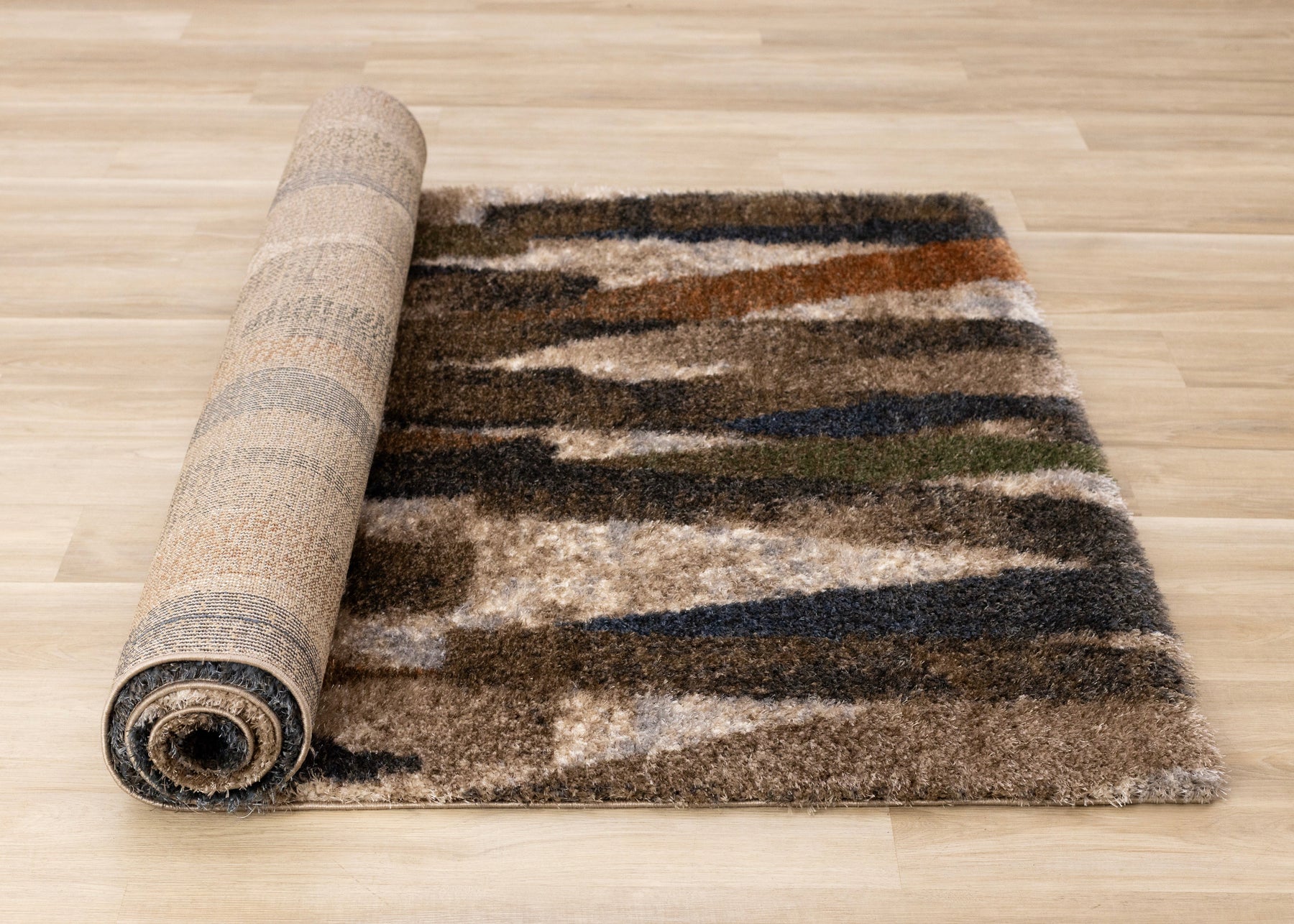 Posh Blue Orange Green Brown Brush Strokes Design Rug
