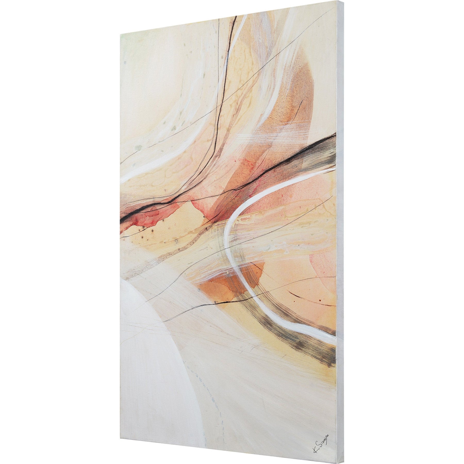This striking artwork feels both serene and significant. This hand-painted piece of art set on cotton canvas is an idyllic fit for a bedroom or hallway space. The hand-painted watercolor strokes in shades of beige and peach further elevate the calming quality.