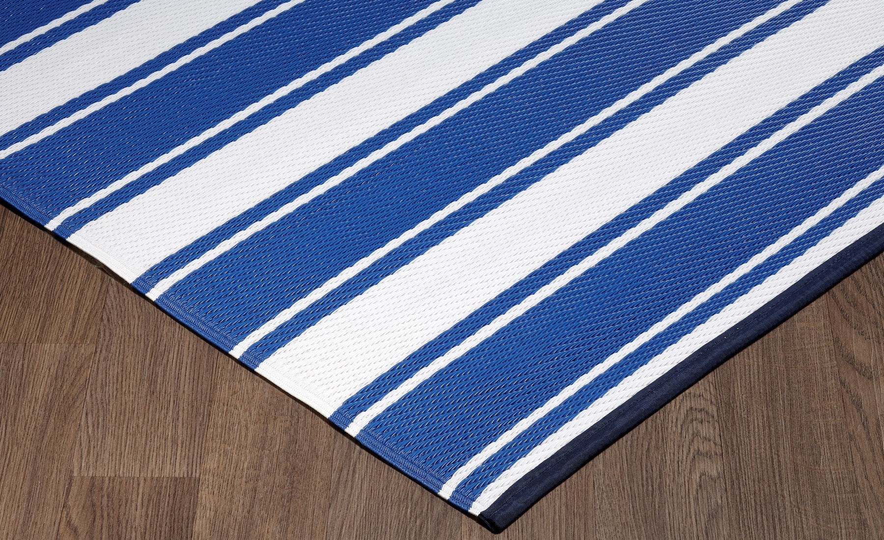 Fiesta FIE-4511-BLUE Indoor Outdoor Blue Band Reversible Plastic Area Rug By Viana Inc